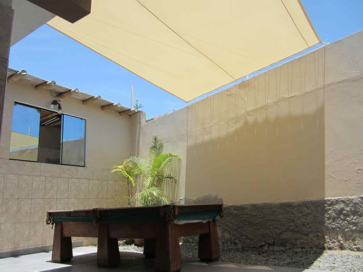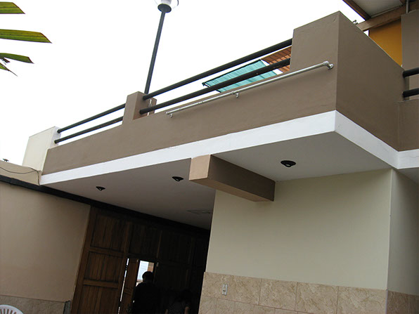 - Sala terraza en segundo piso (sillones), Sala de ingreso con patio (con mesa de billas), cocina (equipada), tres dormitorios, dos baños completos (ducha con agua caliente), garaje (para dos carros).